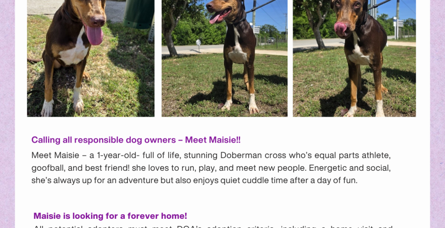 Meet Maisie β a stunning Doberman cross whoβs ready to find her forever home!